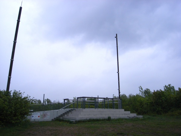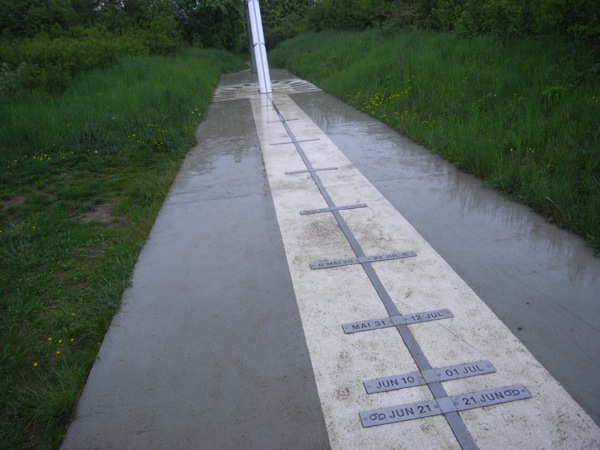 いろんなアングルから見たいので、教会の回りを一周しようと芝生に入ると、獣道のようなものが茂みの中に向かって伸びている。案内も何もないのだが、もしかしてビューポイントにでも連れて行ってくれるのだろうかと進んでみる。すると、その先に橋の頭のようなものが見える。なんだろう?と思い近づくと、儀式でもやりそうな謎の祭壇らしきものが現れる。さらに近づくと、それは大きな日時計だった。その先にある舞台はどうやら天体を見るためのステージらしい。ステージのまわりには夏至や春分などの時の日の出の方向を記したポールが点々と立っている。教会にこんなものが付いてると、私なんかは占星術との関係とかとかつい考えたくなってしまうのだが、まぁ普通の施設っぽい。舞台の横にはこじんまりとした芝生の広場ある。まわりはなにもないところなので、晴れた夜に来たらたしかにさぞ星が綺麗だろう。