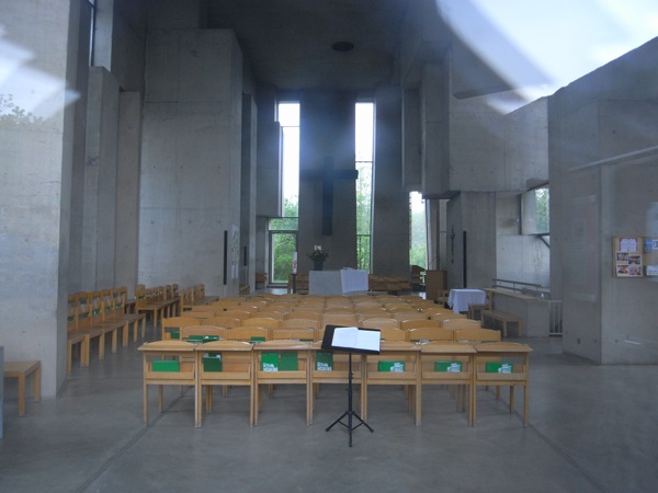 天気のせいか全体としてかなり異様な印象を受けた。しかし宗教施設であることを考えるとこれは成功している気がする。モダン系教会建築の方向としてはかなり面白い。