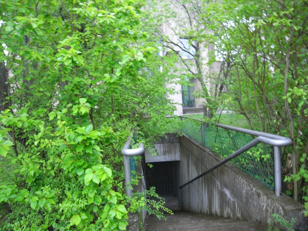 広場の先にさらに違う方向へ向かう獣道を見つける。そこから別ルートで教会に戻れるのかと思い進んでみたのだが、その曲がりくねった道は進めど進めど茂み。人影もなく薄暗く、しかもそのときたまたまiPodで変なエレクトロ系の曲を聴いてたのもあって、だんだん不気味に思えてきて途中で引き返す。人の足跡もあるのでそれなりに使われているとは思うのだが。結局何処に繋がっていたのだろう。