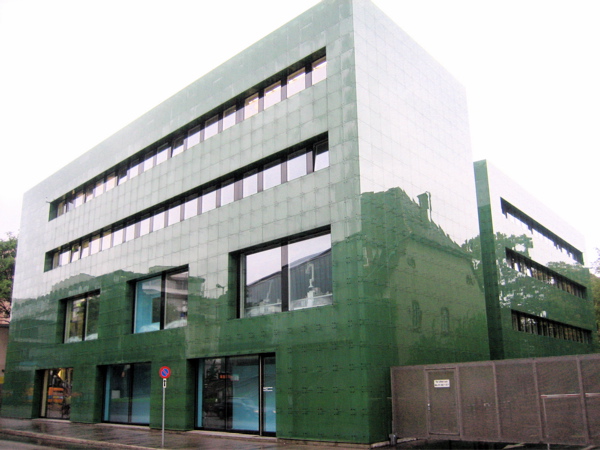 HdeMの初期の作品。外観は緑色ドットがプリントされたガラスパネルにより特徴付けられる。