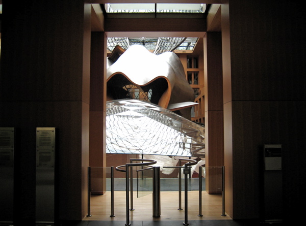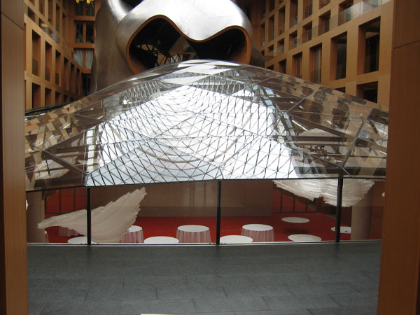 個人的にゲーリーは余り好きではないのだが、これは素直にカッコイイと思う。ゲーリーらしい魚っぽいデザイン。魚の会議場がガラスの水面を泳いでいるようにも見える。見学者がどやどや入ってきたら確かに迷惑だと思うので仕方ないが、近づけないのは残念。