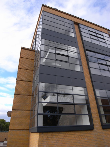 壁が茶色いので一見異なった印象を受けるが、ガラスのカーテンウォールやその窓枠、屋根など後のデッサウのバウハウス校舎などにみられるグロピウスの文法そのものである。特に光を多く取り込むガラスのカーテンウォールは工場という作業空間において重要な意味を持っていたのだろう。