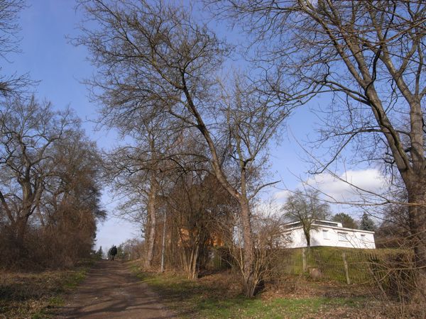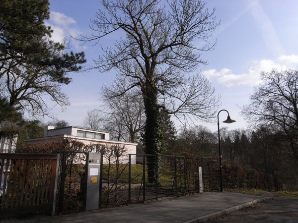 いわゆるバウハウス式と言うかグロピウスっぽい意匠。水平屋根の感じとかはそっくりなのでグロピウス設計だと言われれば信じてしまう。周りの庭スペースと相まって思ったよりもずいぶんと小さく見えた。