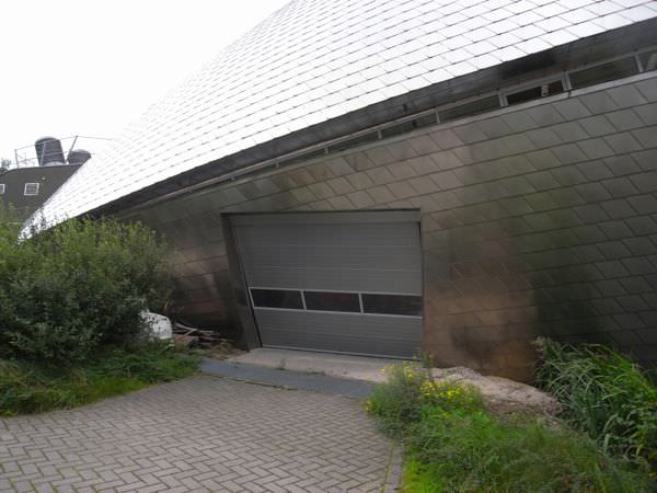 約4万のステンレスの鱗で覆われた、クジラもしくは貝のような外観の科学館はミドリが多い学園地区の池からヌっと顔を出している。