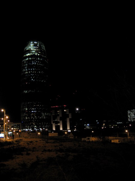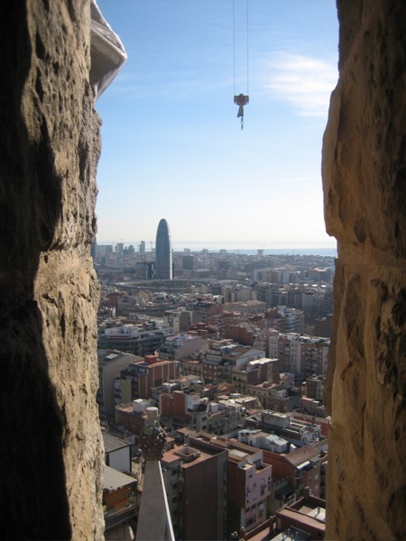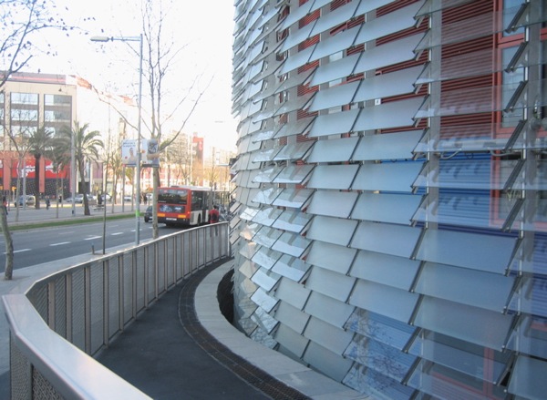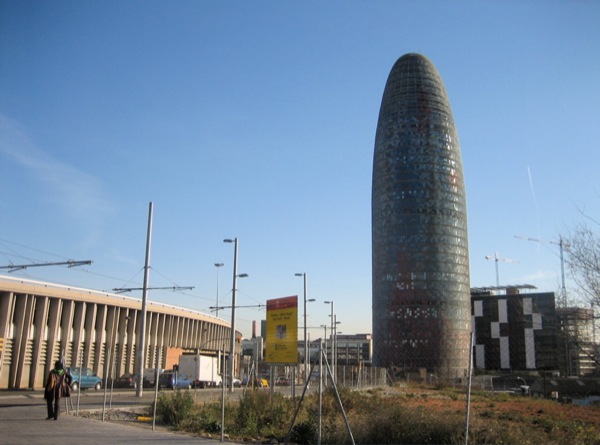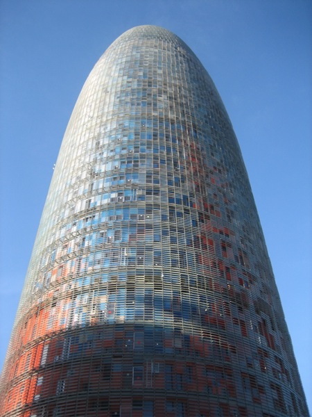 ガウディのサグラダ・ファミリア教会に登っている途中に、遠景に変な建物が見えたので「なんだあれは、あそこまで行ってみよう」というひどい動機で現地で急遽訪れることになったビル。そのときはジャン・ヌーベル作なことも知らなかった(言われてみればっぽい)。とにかくバルセロナの街の他の建物より飛び抜けて高く、その虫の卵のような特異な外観はとても目立ったのである。
